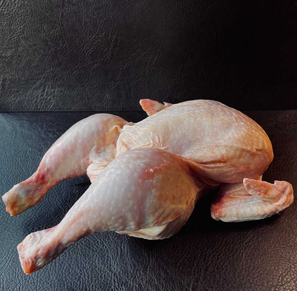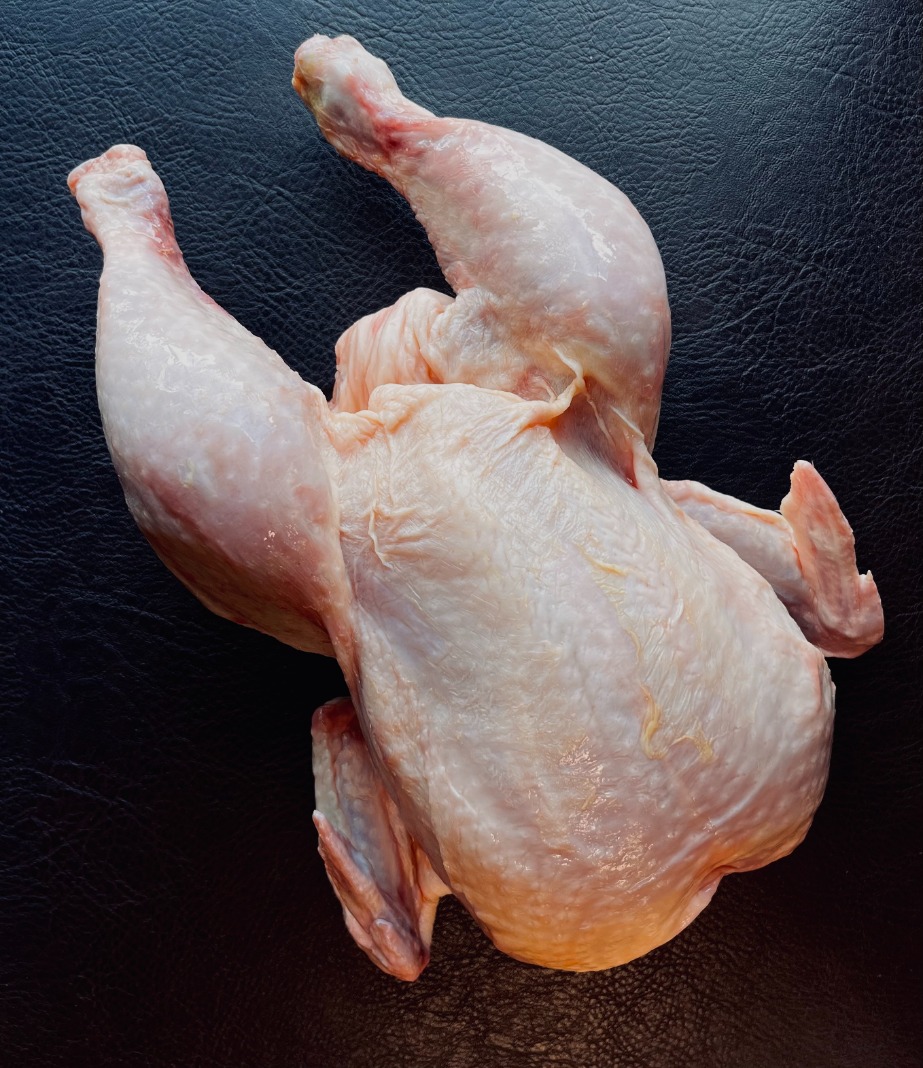 - Plaats de kip op een snijplank met de borstkant naar boven gericht en de poten naar je toe.