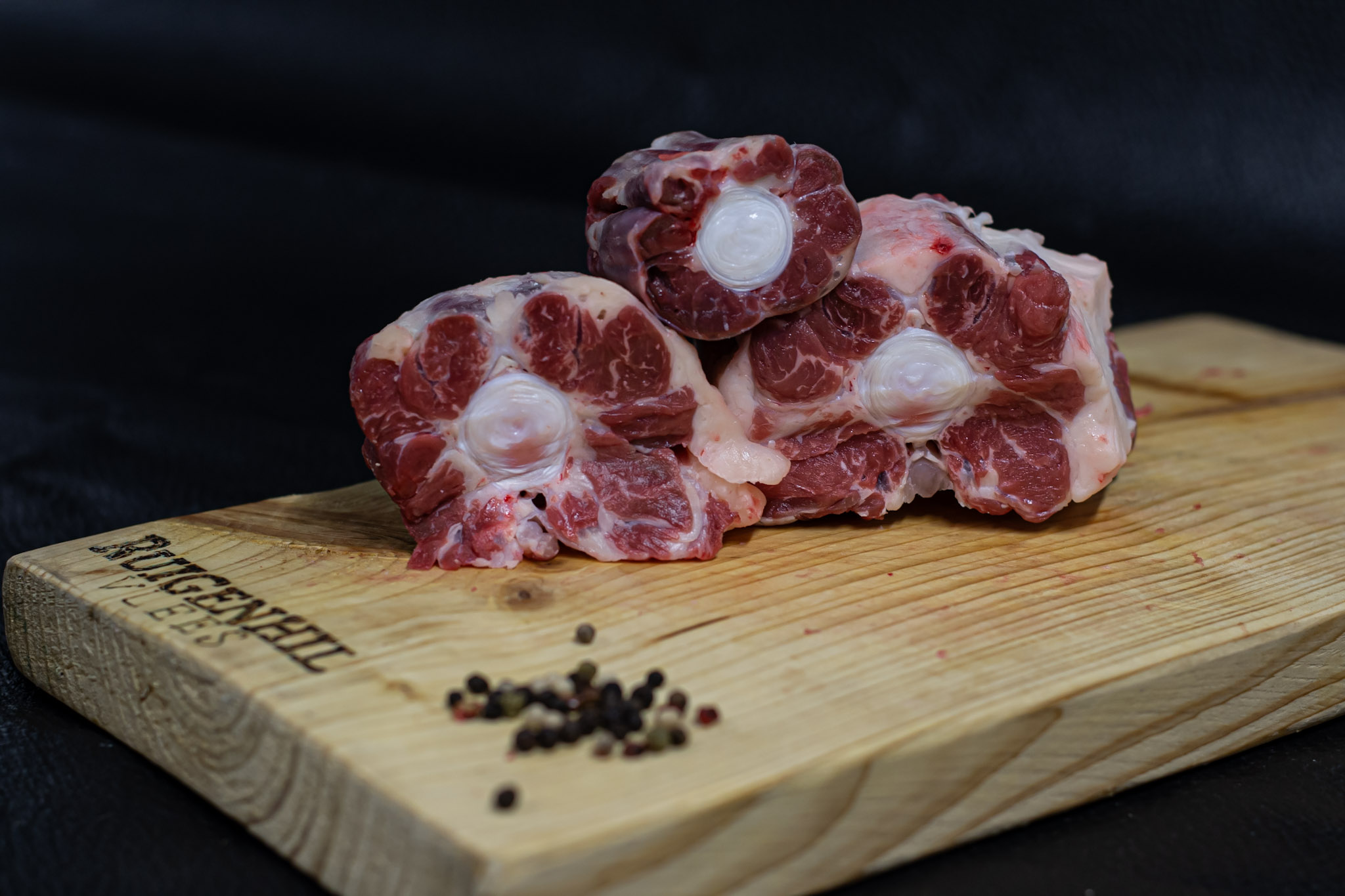 Staart van een koe, bestaat uit staartwervels met daaromheen spierweefsel. Heerlijk om ossenstaartsoep van te maken.